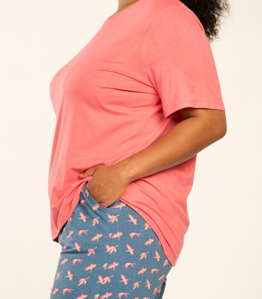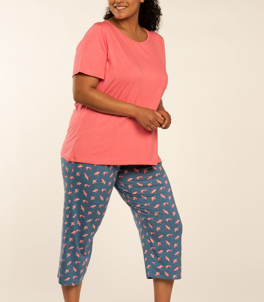 Model je sa kratkim rukavima sa 3/4 duzinom nogavica. Pojas je elastican