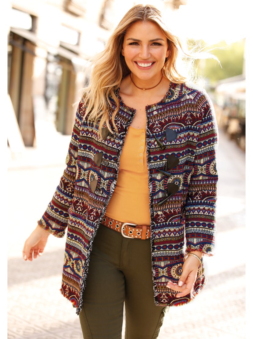 Takn etno jaknica od zakard platna, kopca se sa 3 kopce