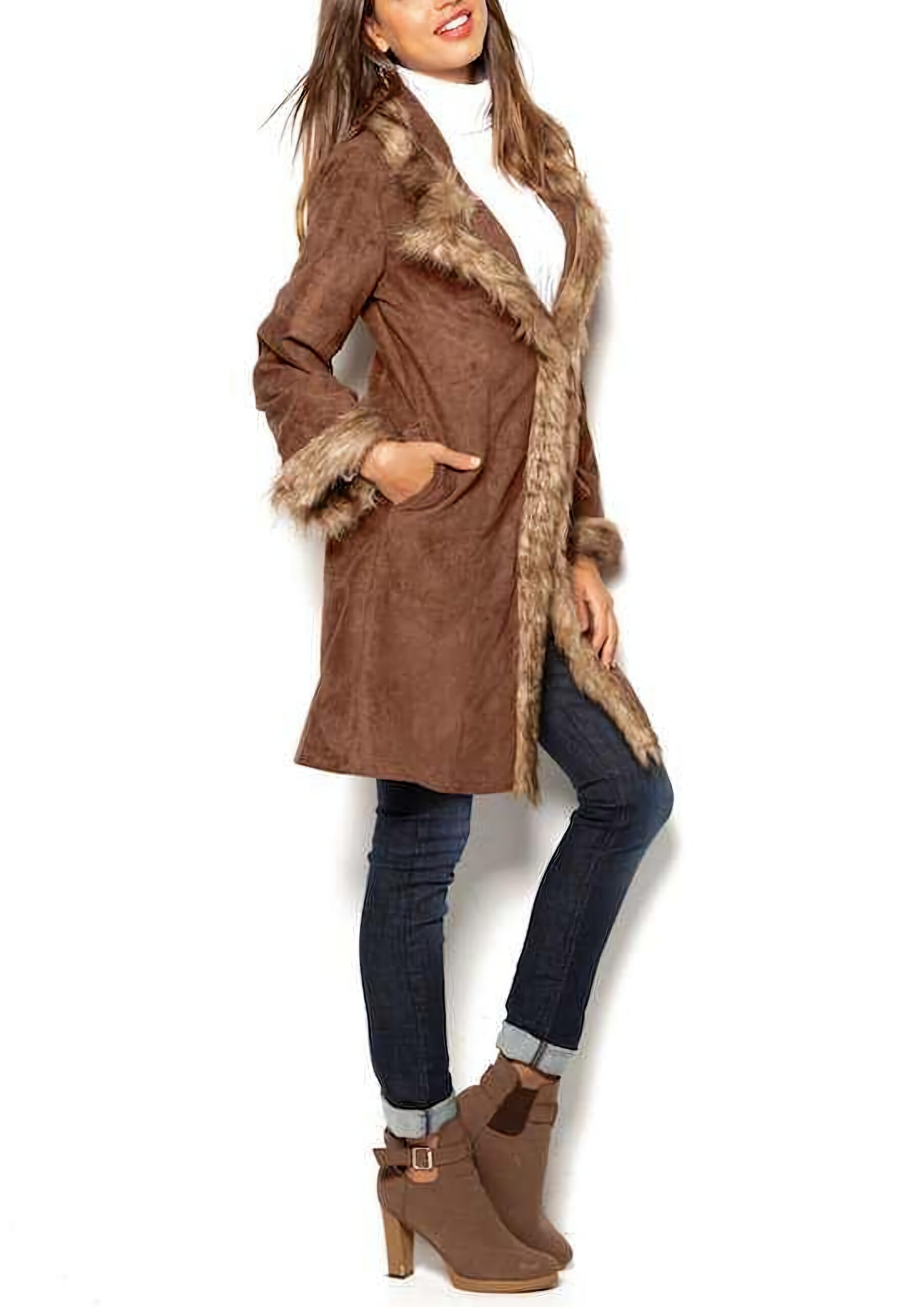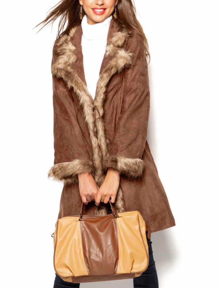 Mantil jakna od eko koze sa imitacijom krzna, velicina 50/52