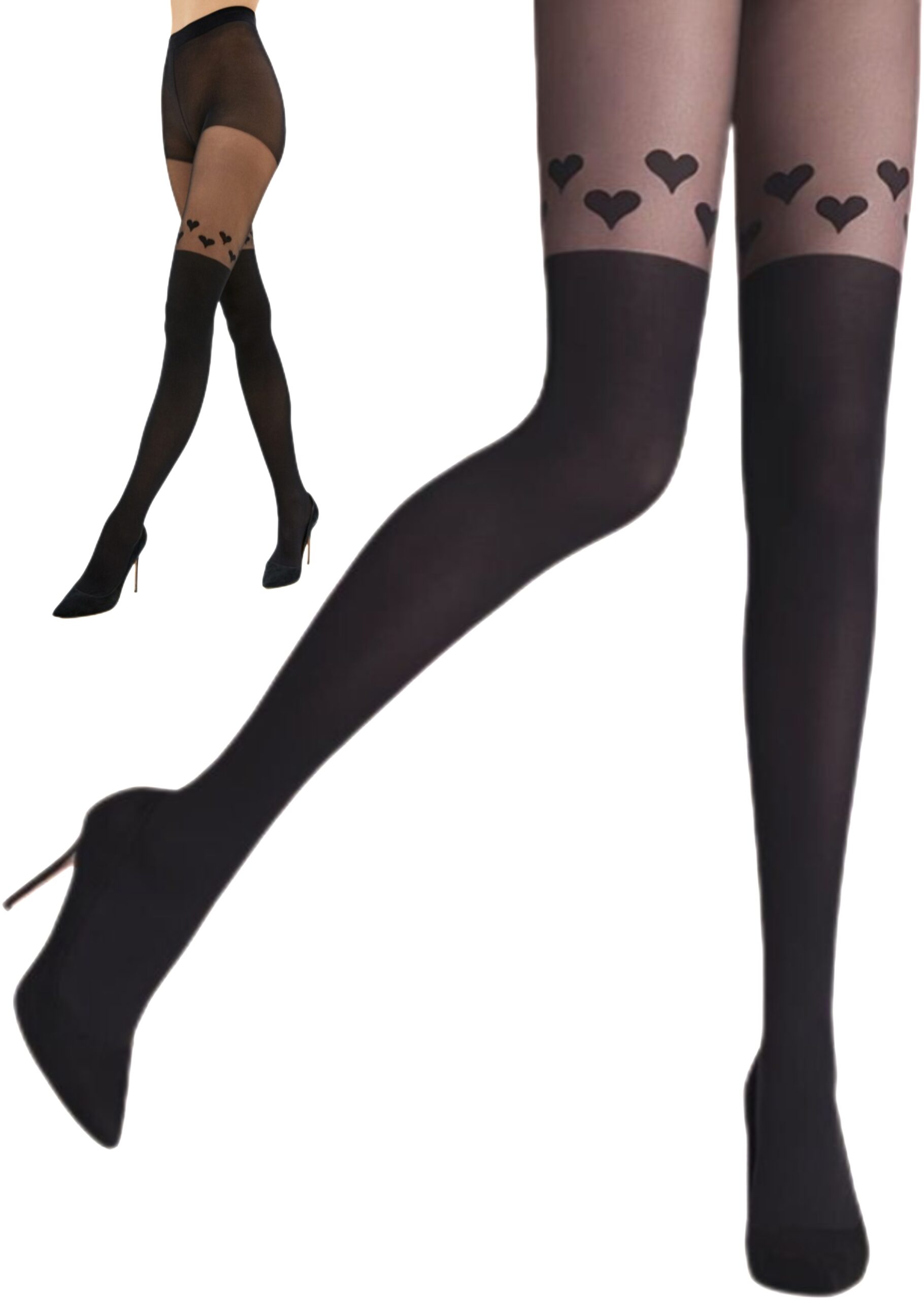 Mirey italijanske hulahopke sa imitacijom natkolenica i sa srcima iznad, model WONDERFUL, debljina 60 Den-a