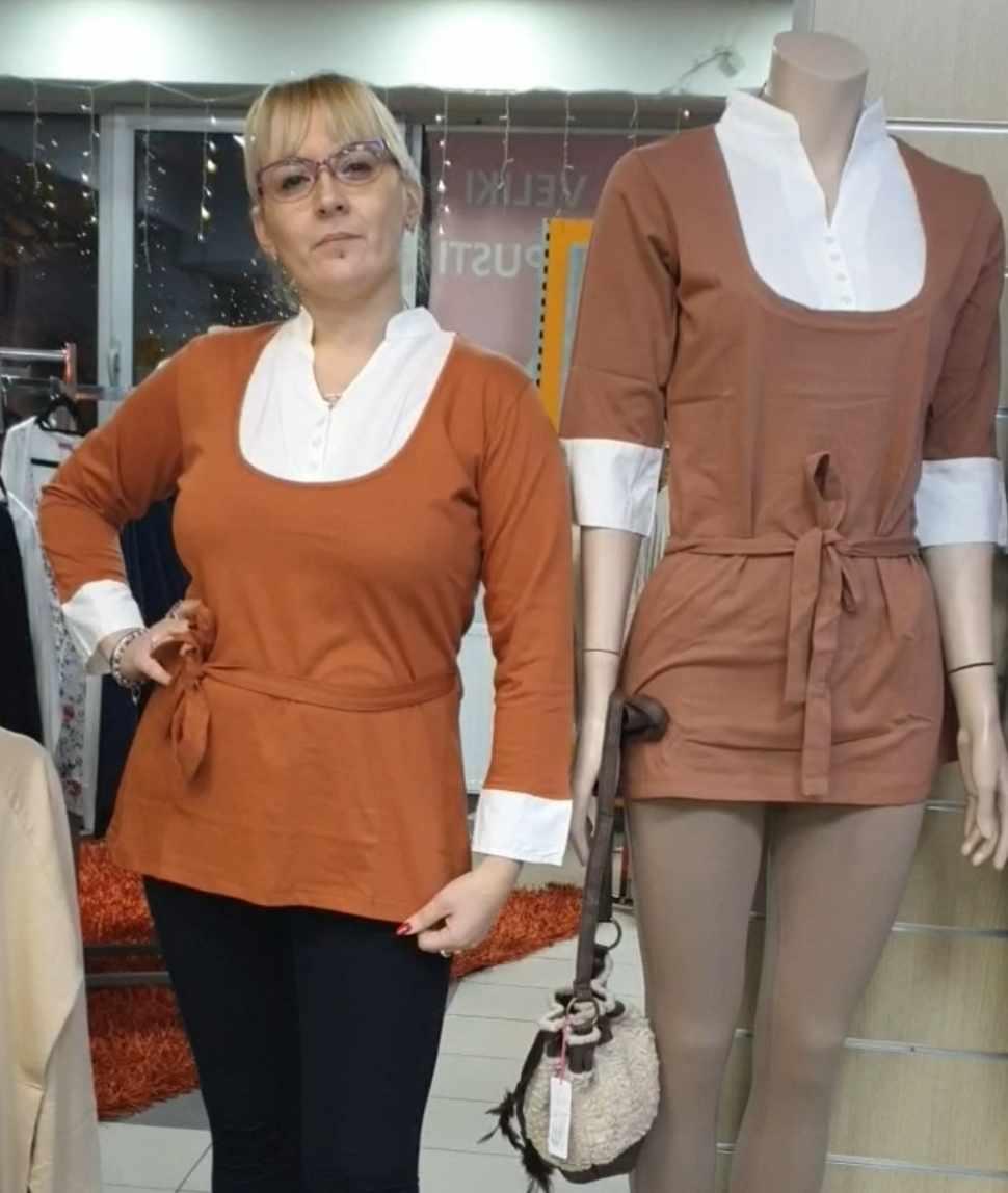 Pamucna majica kosulja dupli efekat u cigla boji kao da imate 2 majice, odnosno kosulju i majicu preko.