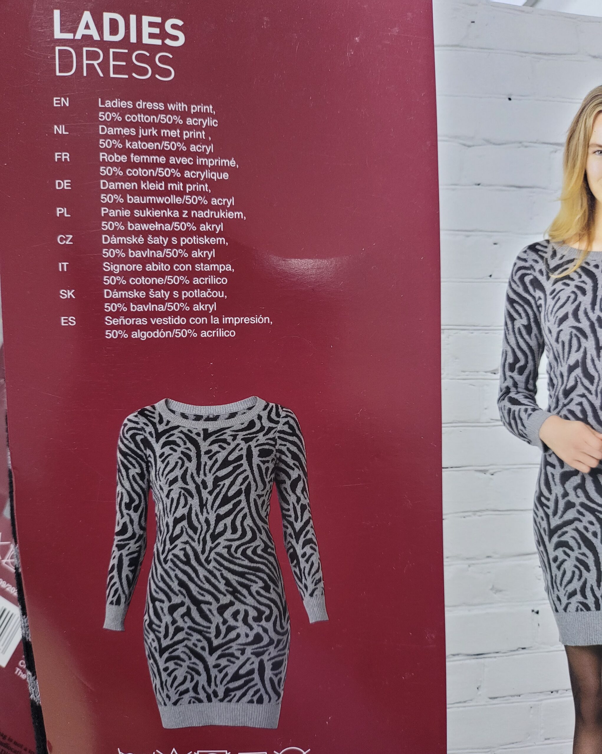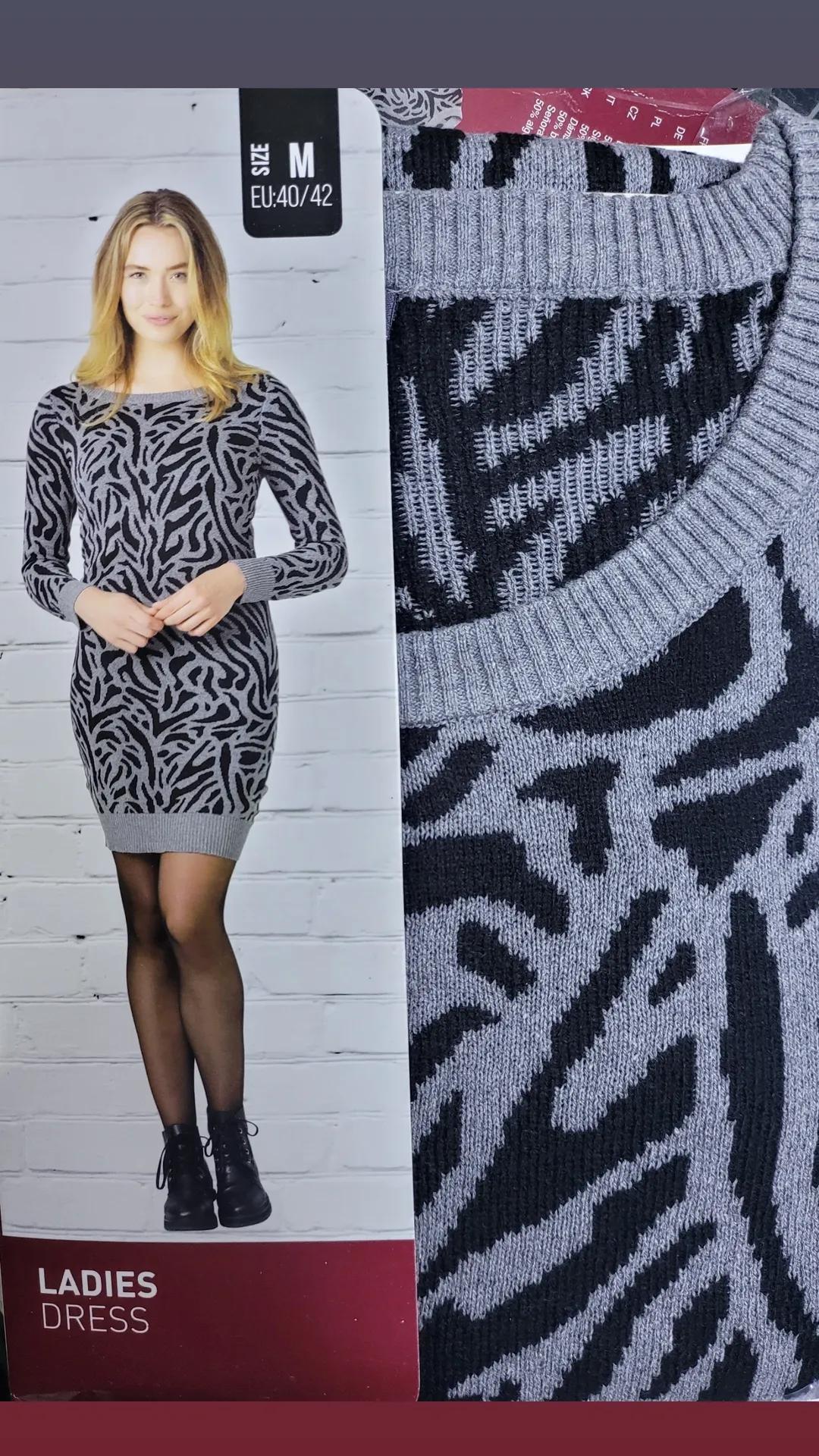 / Pletena haljina u animal printu, siva boja