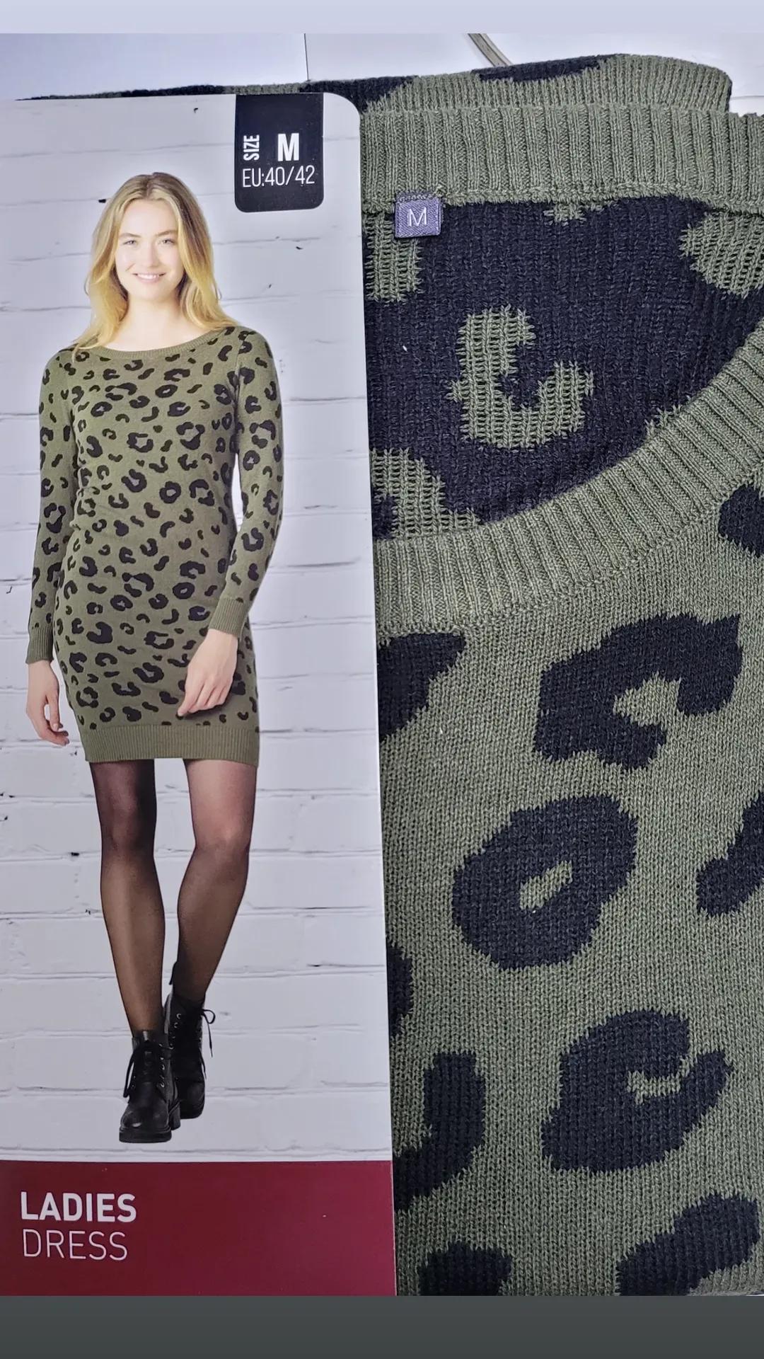 Pletena haljina u animal printu, zelena boja količina