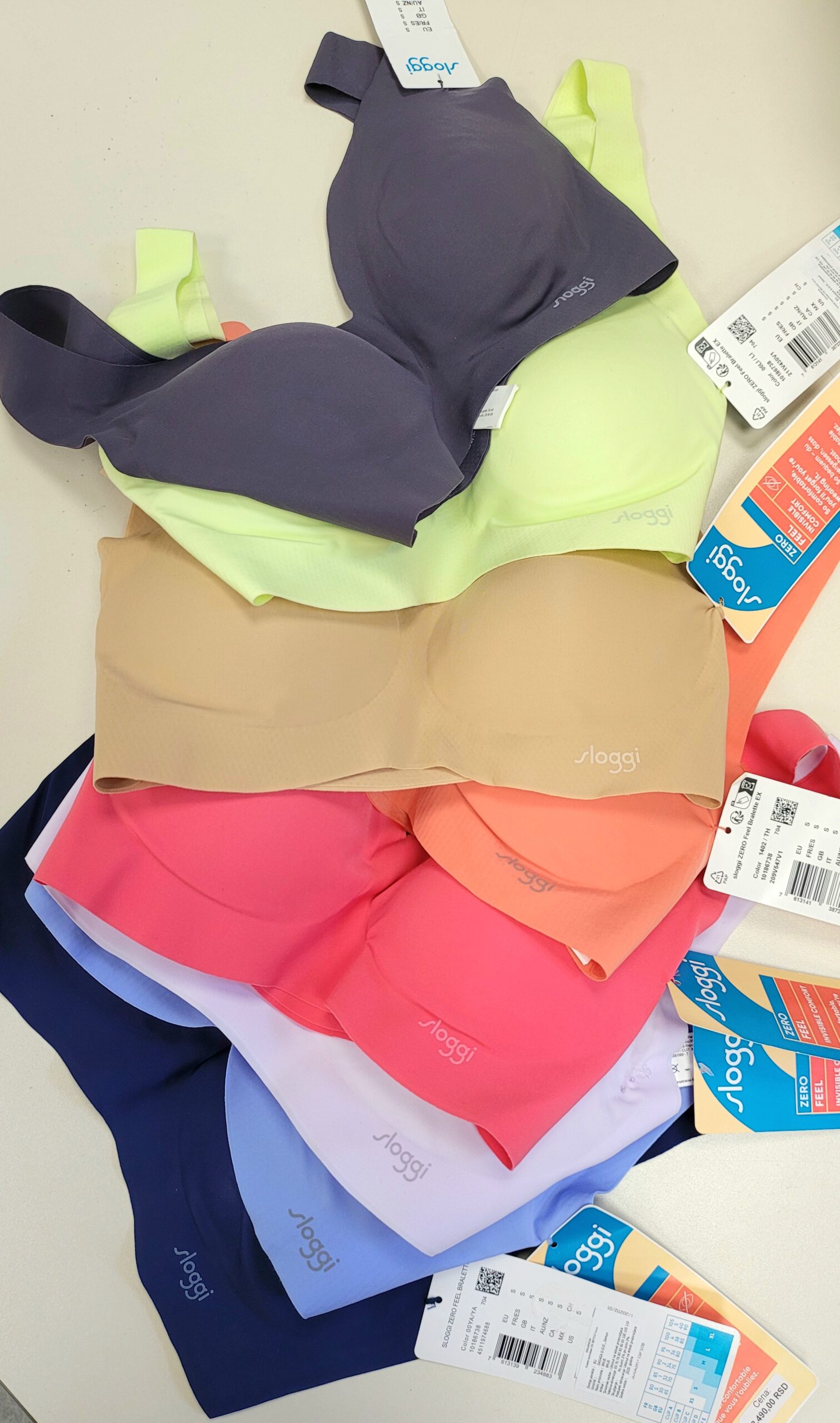 Nevidljiv ispod odeće koja prijanja uz kožu, zahvaljujući inovativnoj tehnologiji tačkastog lepljenja na bretelama i na gornjim i donjim ivicama prednjeg, bočnih i zadnjeg dela. Mali sloggi štampani znak na prednjoj strani. Potpuno bez metalnih ili plastičnih detalja za maksimalnu udobnost.