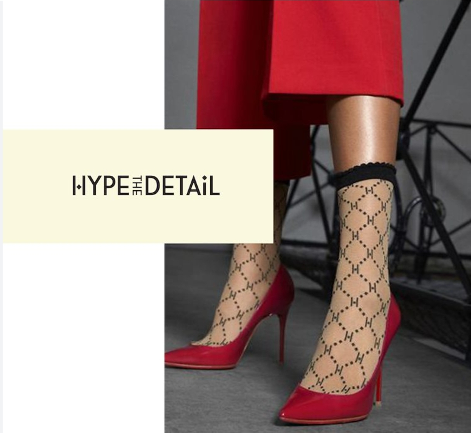 Najlon sokne u boji koze sa printom H u crnoj boji, univerzalna velicina