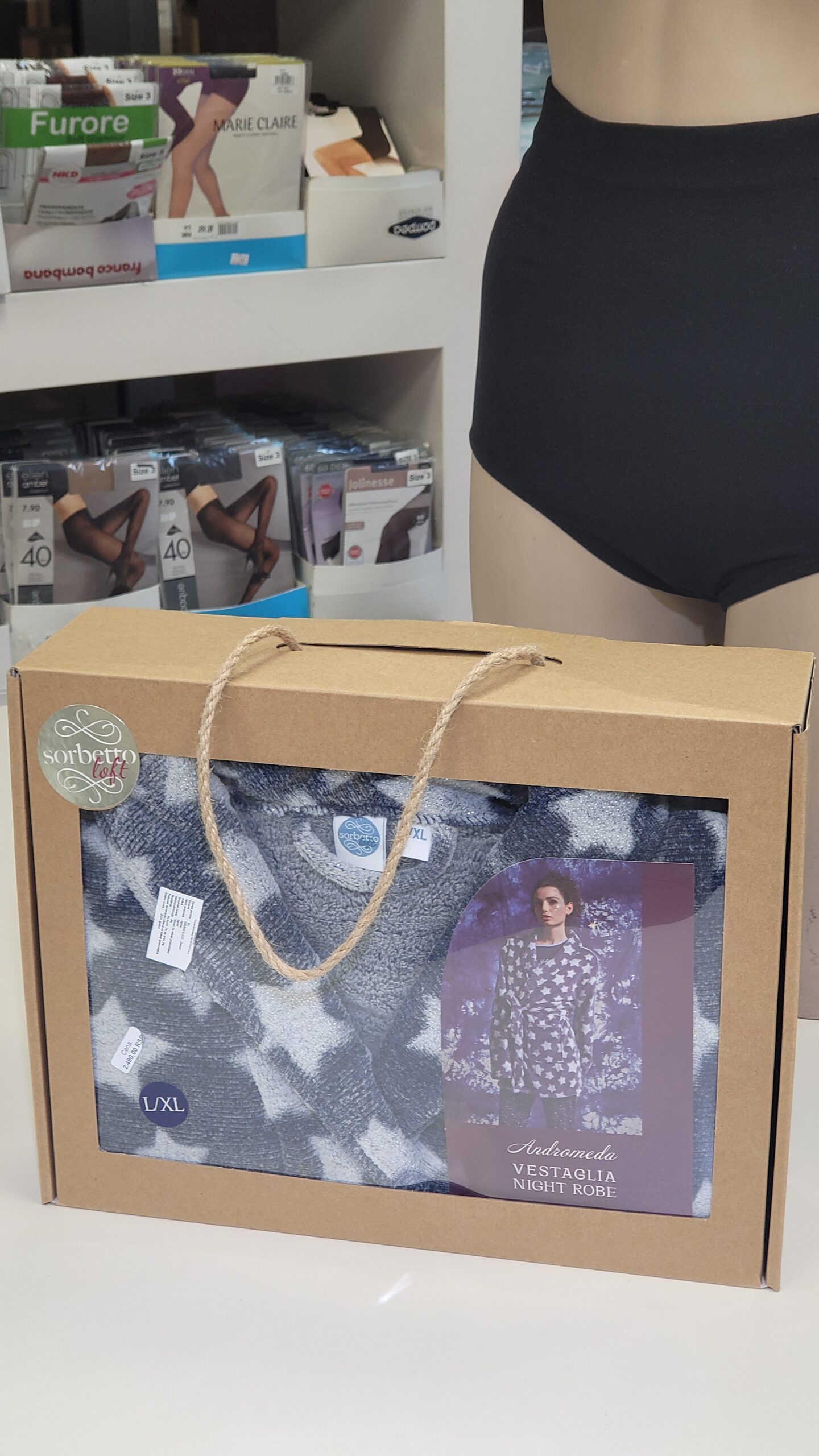Topli bade mantil sa zvezdicama, model Andromeda, mekan kao cebence. U prelepom kartonskom pakovanju, odlicno za poklon