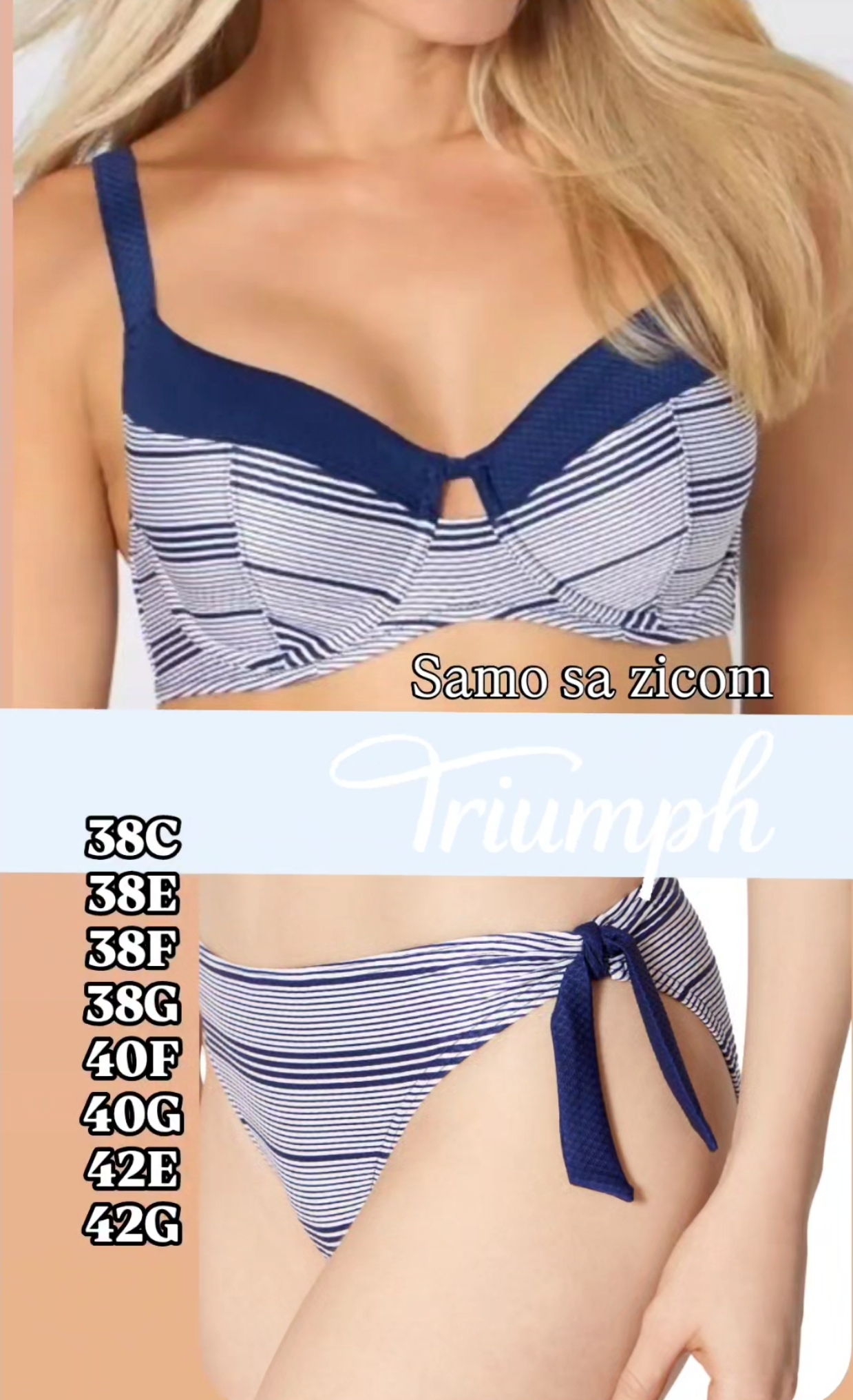 TRIUMPH dvodelni kupaci kostim samo sa zicom, nije postavljen, bretele se podesavaju, model Summer wave W u teget-beloj boji